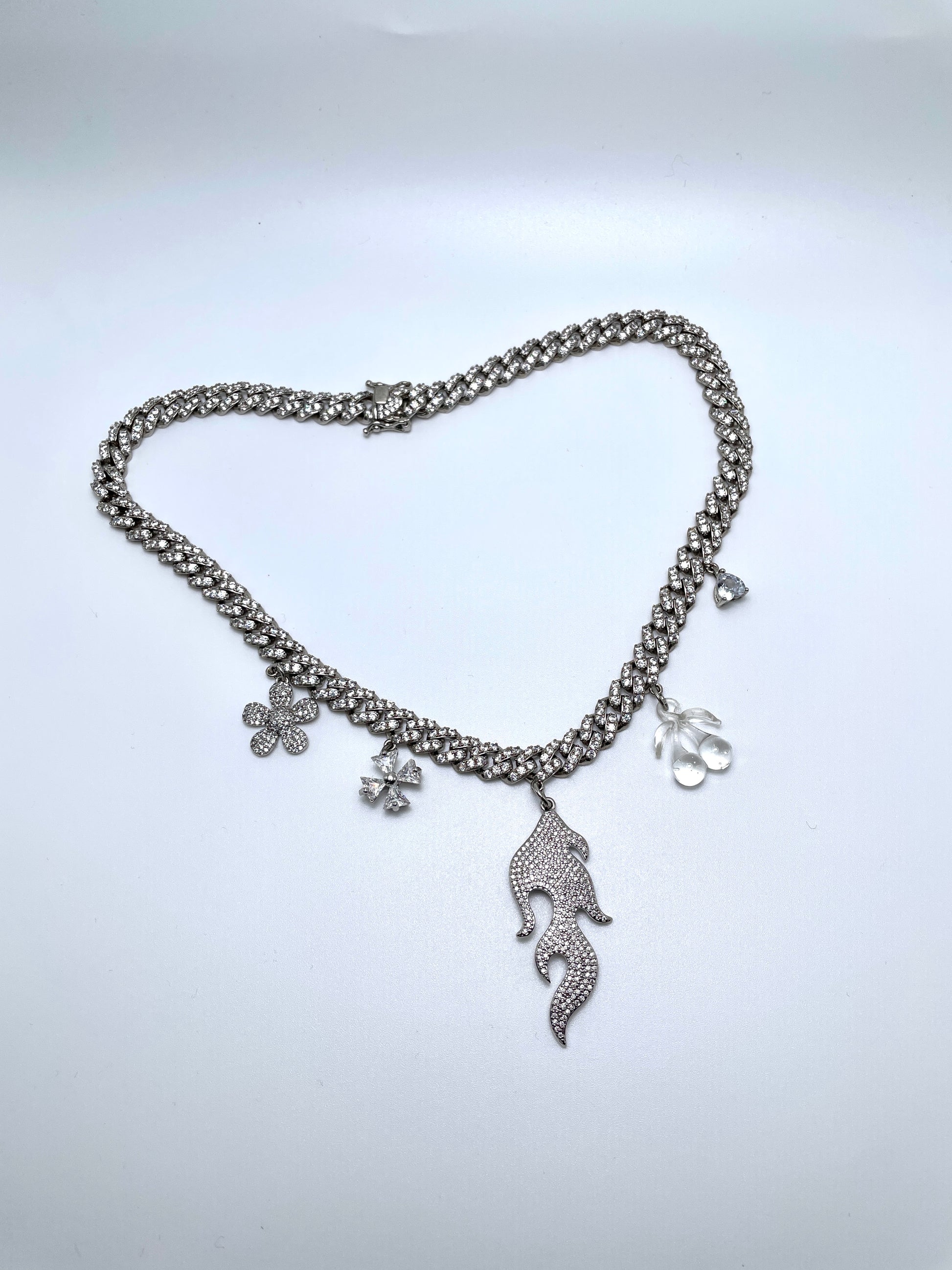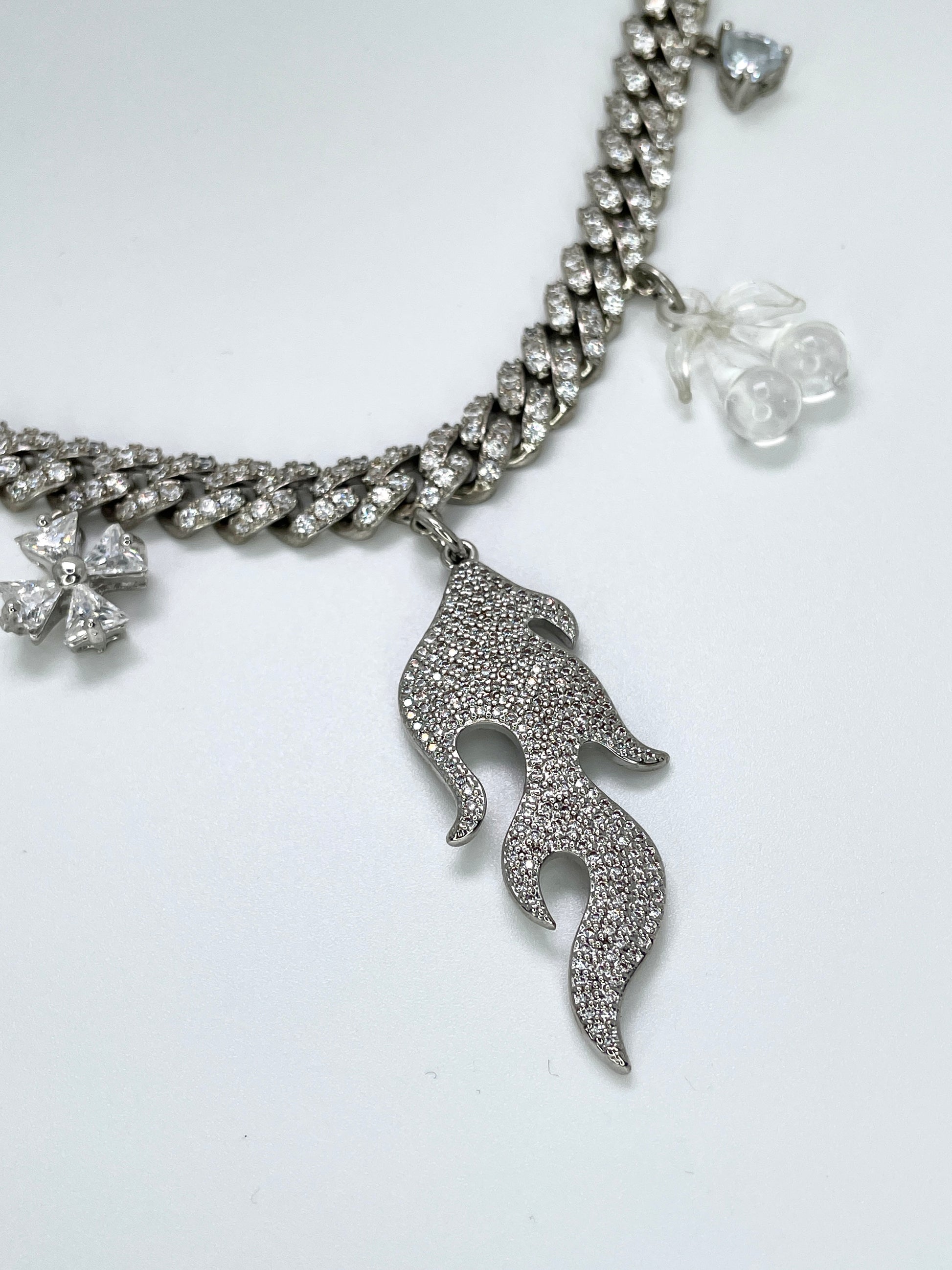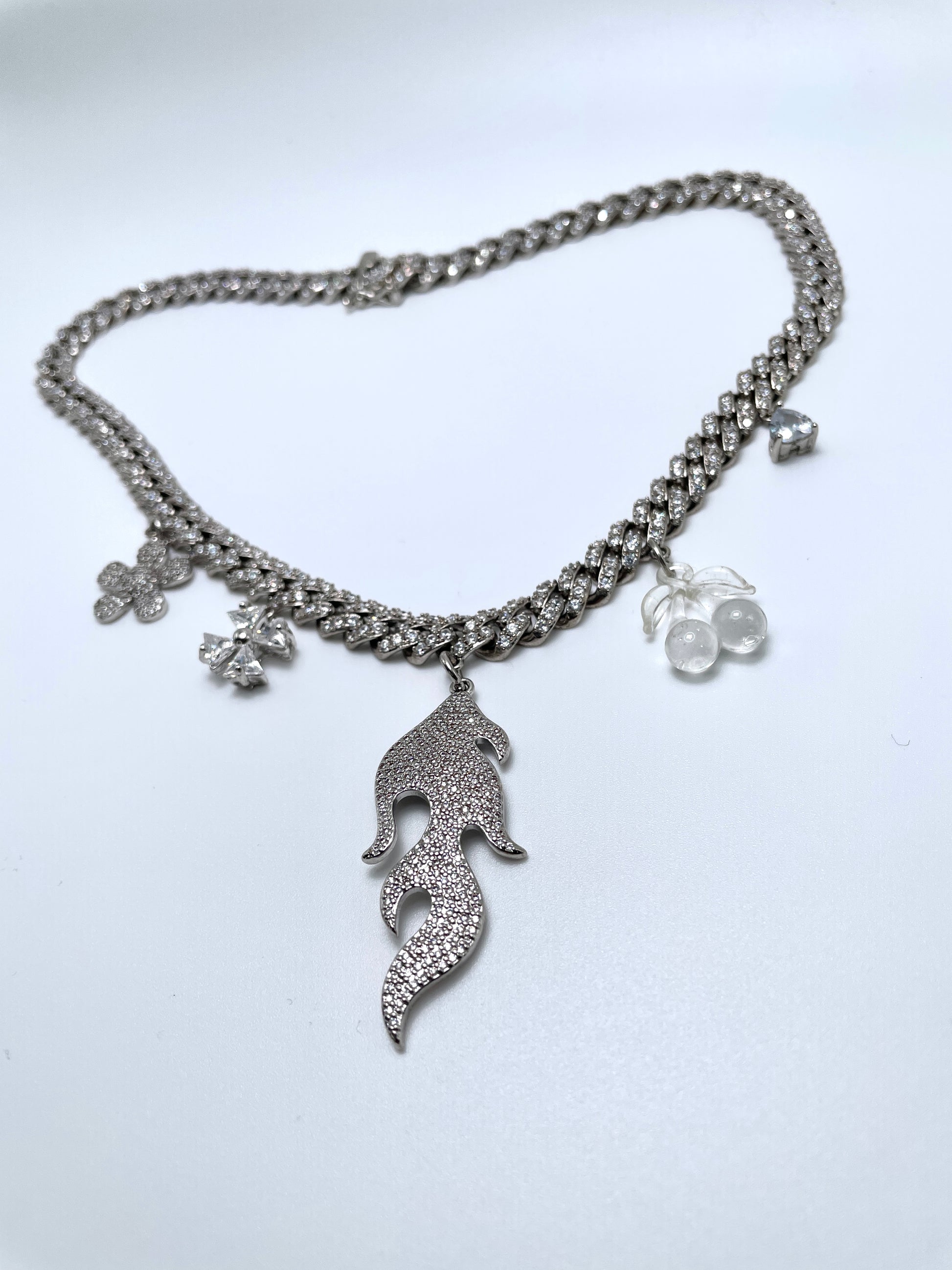 Indulge in luxury with our Cherry Noir necklace. Crafted from 925 Sterling silver and adorned with sparkling charms, this necklace is a must-have for any fashion-forward individual.