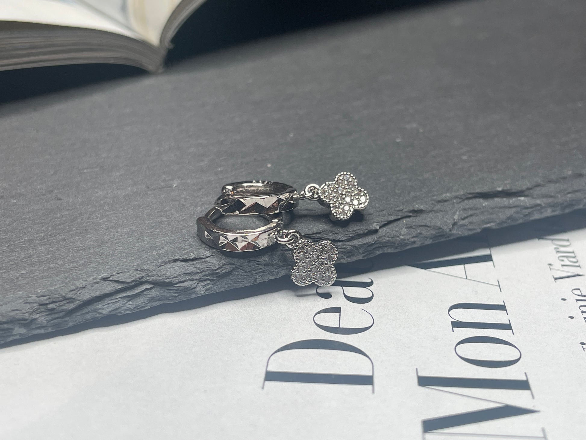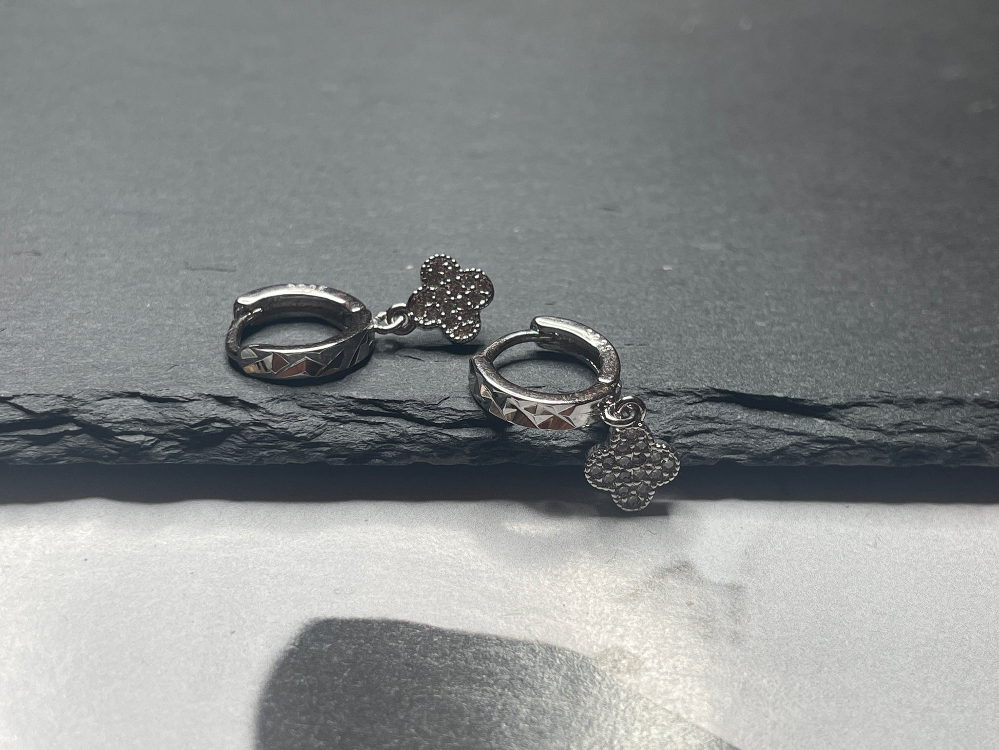 4 leaf clover design pendant on 925 Sterling silver huggie earrings