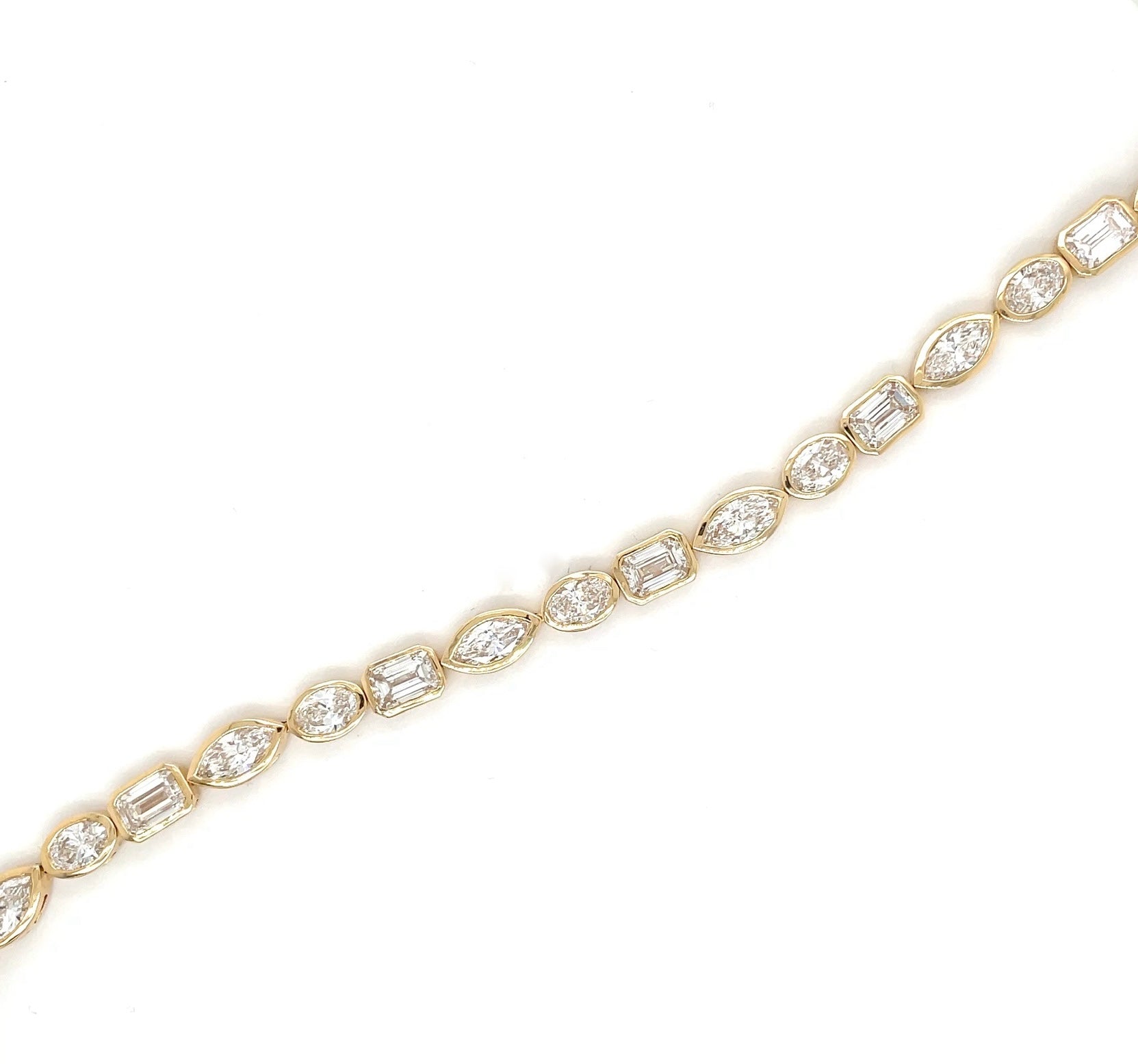 Experience the ultimate in luxury with our Bezel Bliss Bracelet. Crafted with 14k yellow gold and adorned with 7 inches of bezel set 33ct lab diamonds, this bracelet is the epitome of sophistication.